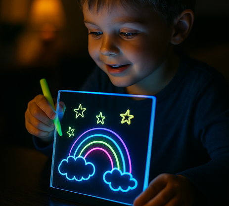Grâce à sa surface effaçable et à sa lumière LED douce, la tablette lumineuse Selya transforme chaque dessin en un moment d’émerveillement. Elle encourage l’imagination, apaise les moments calmes et accompagne votre enfant dans des heures de jeu créatif… encore et encore.